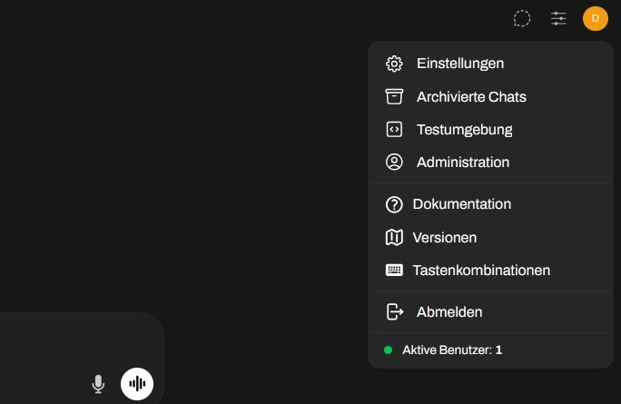 Über das Nutzermenü oben rechts gelangt man in den Einstellungsbereich.